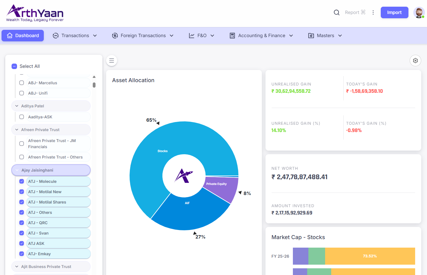 ArthYaan helps wealth managers, family offices, and advisors gain a single, accurate view of client wealth across asset classes with automated reporting and compliance-ready outputs.